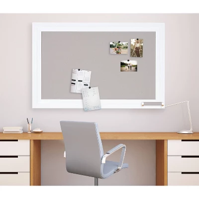 Organize your home or office with this decorative and functional framed linen fabric pinboard. This decorative wall-mounted memo board has a soft linen fabric pinning surface for posting photos, invitations, and stellar report cards. Metal D-ring hangers are already attached to the back of the frame for either horizontal or vertical display to fit your needs. Memo board surface is 23.5 inches by 39.5 inches; Frame profile is 2.5 inches wide by 1 inch deep. Wall-mounted display dimensions are 29.5 inches by 45.5 inches by 1 inch deep. Use this framed bulletin board for a maximum organization in your entryway, kitchen, or home office.