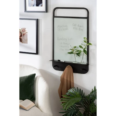 Organize your life by hanging the Decatur wall organizer in your favorite space. Designed with modern simplicity and functionality in mind, the Decatur has a radius rectangle shape and a sleek, refined black finish. This wall organizer features a glass dry erase surface to give you a creative space to write things like messages, grocery lists, chores, and reminders. The frame of the Decatur is crafted with a resilient iron material, giving it a premium quality that elevates it above other wall organizers in the marketplace. The overall dimensions of this sophisticated wall organizer are 18 inches wide by 4.5 inches deep by 30 inches tall, while the glass surface is 16.5 inches wide by 20 inches tall. The Decatur also features three functional hanging pegs for storage, providing three places to hang light jackets, small purses, kids’ backpacks, and pet leashes. This metal wall organizer is an excellent focal point to create a family command center in any modern space. Hang it in your living room, mudroom, entryway, kitchen, bedroom, or office with the sturdy keyhole hangers attached to the back of the metal frame.