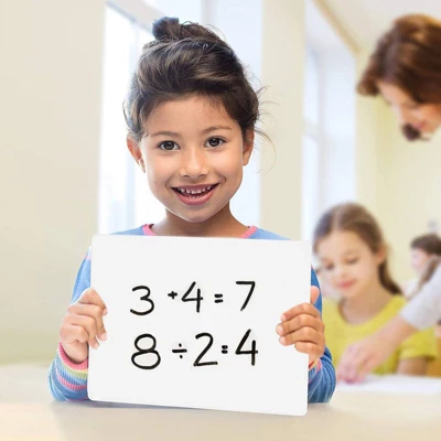 Dual sided, pre-printed lines on one side and blank on the other offers endless uses. Blank side works great for classroom games, math lessons and reminders. While our pre-printed side is great for penmanship and sentence writing. Durable masonite lap boards are 9″ x 12″ and can be used with all dry erase markers. An environment friendly way to learn, as you just write, wipe off and re-use with no waste. Pack of 6 boards.