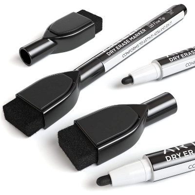 Arteza Dry Erase Markers, Magnetic Eraser Caps, Fine Tip, Black – 36 Pack (ARTZ-8417): Convenient Bulk Pack – Perfect for keeping the office, classroom, or home stocked with your essentials. Magnetic Eraser Caps – Revise or erase your writing by simply flipping over your marker; store it right on the board when not in use. Wipes Away Easily – Use a damp cloth or dry eraser to get a clean surface every time; won’t leave behind ghosting marks. AP Certified Non-Toxic – These fine point black dry erase markers contain low-odor ink that is AP Certified and safe for both adults and children Restock your office, classroom, or home with bold and easily-erasable fine point dry erase markers with black ink. This premium bulk pack is perfect for class lectures, notes, calendars, and brainstorming sessions. The fine tip allows you to get optimal precision, plus you can adjust the nib to write slightly thicker lines. The bold black ink helps your writing stand out and gives your notes a professional look. Besides whiteboard surfaces, these are also suitable for glass and metal. The rounded, lightweight barrel fits comfortably in your hand and writes smoothly onto non-porous surfaces. Once you’re ready to wipe off your writing or notes, simply take a damp cloth or the dry eraser on the cap and wipe it over your surface. No need to search for your markers and erasers anymore, because you can keep them right on your board. You also don’t have to worry about your markers leaving ghosting marks behind; the ink removes cleanly every time. Arteza makes art supplies affordable to creators with every budget.