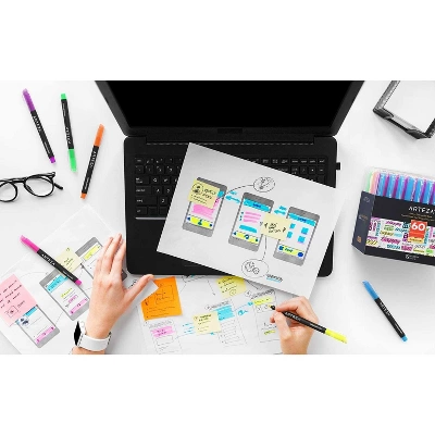 Arteza Highlighters, Narrow Chisel Tip, 6 Assorted Colors (green, yellow, orange, pink, purple and blue) – 60 Pack (ARTZ-8579): 6 Neon Colors – Organize and color-code your notes without hassle. Bulk Set – Great for resupplying your classroom, office, or home. Narrow Chisel Tips – Making meaningful marks to differentiate important information. Smear-Free – The quick-drying ink won’t smudge, making these ideal for left-handed writers Arteza makes art supplies affordable to creators with every budget.