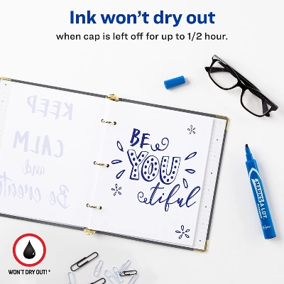 - Avery permanent markers won’t become dried out for up to half an hour without a cap.