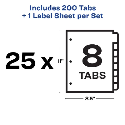 - Label all 8 tab dividers at once with the Index Maker Easy Apply Label strip that results in 25 perfectly aligned sets of tabs. Tab dividers let you organize projects, personal documents, and more. Eight tabs per set, 25 sets per box.