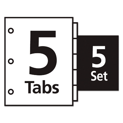 Organize binder dividers or file folders with these Avery Index Maker Print Apply five-tab clear label copier indexes. Don’t waste time and money ordering custom printed binder dividers with tabs when you can easily create and print personalized dividers with Avery Index Maker Clear Label Dividers for copiers. Easily customize your title tabs using the free templates on the Avery website. Once you’re ready to print, feed the Easy Peel label sheet through the manual bypass tray of your copier for clean, professional looking results in minutes. This pack comes with five sets of 5-tab dividers, and the Easy Apply clear label strips make it simple to apply all 5 labels of each set at once. Just print, align labels against tabs, smooth down labels and peel up strip. Each 3-hole punched durable divider also features doubled-sided, reinforced tabs and edges to help resist tearing for long-lasting, everyday use. These 3 ring binder dividers with tabs are a great addition to your medical office supplies, school binders, personal organizers, tax office supplies, presentation reports and more. Print, peel, and press your way to a perfect, precise project. Save time and money by creating your own high-quality custom tab dividers using free templates from the Avery website and printing on your copier. Label all 5 tab dividers at once with the Index Maker Easy Apply Label strip that results in five perfectly aligned sets of tabs. Get a professional, printed-on look with clear labels that virtually disappear on the white divider tabs. Great for organizing your medical document binder, meeting materials, proposals, tax organizer binder, financial planner and more. Long-lasting, tear-resistant tabbed dividers feature doubled-sided reinforced tabs and edges. Tab dividers let you organize projects, personal documents, and more. Made of white paper with clear tabs. Dimensions: 8.5″W x 11″L. Five-tab set of three-hole punched dividers. Five sets pe..