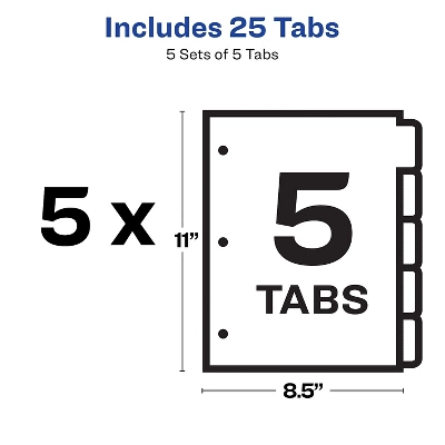 - Label all 5 tab dividers at once with the Index Maker Easy Apply Label strip that results in five perfectly aligned sets of tabs. Tab dividers let you organize projects, personal documents, and more. Five sets per pack.