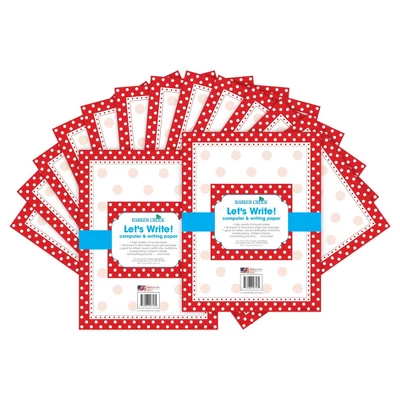 Barker Creek’s Red & White Dots paper is multi-directional for versatility. Use it vertically for writing letters home and other correspondence. Then turn it sideways to create customized award certificates, notices and more. The possibilities are limited only by your imagination. Look for more coordinating Dots products by Barker Creek.