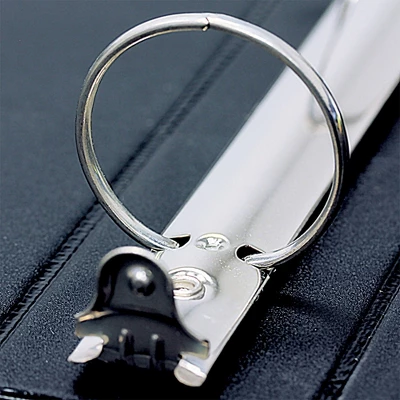 - Round, metal rings mounted on spine
