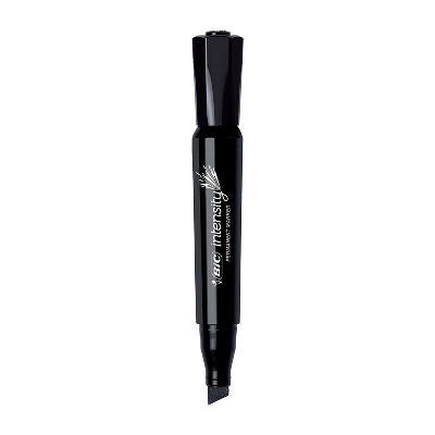 Durable permanent markers offer bold, vibrant, long-lasting color. BIC Intensity Permanent Marker is a durable permanent marker with bold, long-lasting color. Each marker features a unique snap cap with a vapor seal locking mechanism to help prevent dry-out. Ideal for labeling, arts and crafts, creating posters, and more, each marker features a soft, non-slip grip that offers comfort and enhanced control, while the versatile chisel tip lets you easily switch between broad or fine lines. Capable of marking on a wide variety of surfaces, this low-odor, non-toxic marker has acid free* ink, making it a great choice for use at home, school, or the office. *No added acid; no measurable pH. Unique Snap Cap prevents dry out with a vapor seal locking mechanism. Low-odor permanent marker provides long-lasting, bold color. Quick-drying, fade and water resistant. Acid-Free ink (no added acid; no measurable pH). Non-Slip grip for comfort and control. Versatile chisel tip creates thick and thin lines. Marks on just about everything including: glass, metal, plastic, photos, foils, coated paper, oily and damp surfaces. Box of 12 tank-style markers with vivid black ink. Certifications Standards: ACMI approved non-toxic. Sold as 1 Dozen.