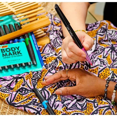 Have fun expressing yourself and stand out from the crowd with BodyMark by BIC Temporary Tattoo Markers! These cosmetic-quality markers are safe on skin* and come in vivid, long-lasting colors. Whether you are going to a party, supporting your favorite team, attending a festival, or you just feel like trying something different, these body art markers will help you create unique tattoo designs that reflect your style and mood. *Complies with cosmetic regulations. Follow all warnings and instructions. Not tested on sensitive skin.