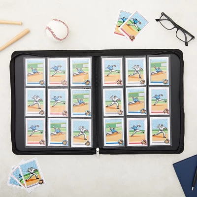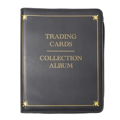 Bright Creations 9 Pocket Trading Card Binder With Zipper, Holds Up To 360 Cards, 14 X 11 In, Black & Gold Faux Leather