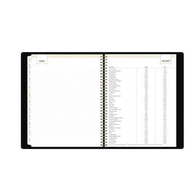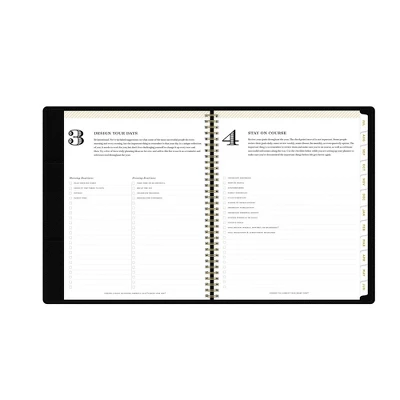 - 12 months of horizontal weekly and tabbed monthly planning calendars