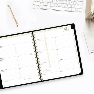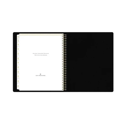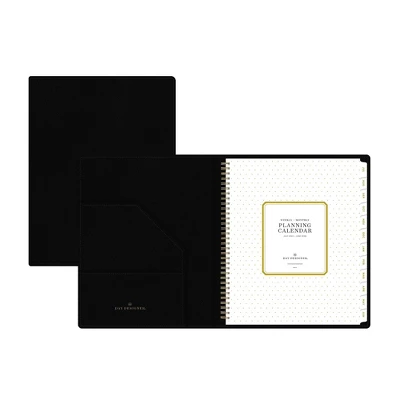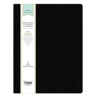 This full-size academic planner has a refillable vegan leather cover in Black and a removable weekly/monthly planner with twin-wire binding. Store documents in the black portfolio’s sewn-in pockets, and use the planner to organize your school year schedule.