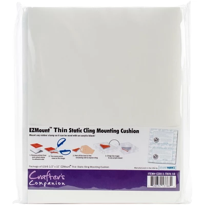 EZ Mount Static Cling Mounting Foam allows you to make any rubber stamp into an EZMount stamp that clings perfectly to an acrylic block. No sticky mess and never wears out. Simply cut out you EZ Mount to the shape and size of your stamp, adhere it and you are ready for any acrylic block. NOTE: Not recommended for use with acetate storage systems. This package contains ten 11×8-1/2in sheets. Available with and without foam. Made in USA.