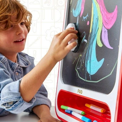 - Comprehensive art kit includes 1 easel, 6 markers, 5 chalks, 2 erasers, and 1 paper roll