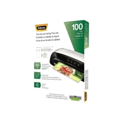 Protect your documents from tears and stains with this Fellowes Callisto 95 cold and thermal laminator. Keep well-maintained and stain-free documents by using this cold and thermal laminator. Thanks to InstaHeat technology, the warm-up time only takes one minute with lamination speeds of up to 19 inches per minute to increase productivity. A heat guard insulates the exterior from heat, while the reverse mode prevents jamming and allows repositioning of misaligned pouches. Different temperature settings allow for thermal lamination of documents of different sizes up to 9.5 inches wide and 5 mils thick and cold lamination of self-adhesive pouches. This Fellowes Callisto 95 cold and thermal laminator automatically shuts down when not in use to avoid overheating and conserve energy. Silver/black thermal and cold laminator for use with laminating pouches to protect documents. Provides lamination with a one-minute warm-up time, 19″ per minute laminating speed, and two rollers. 9.5″ wide throat supports input up to 9.5″ wide. Dimensions: 17.75″H x 5.75″W x 4.25″D. Advanced temperature control ensures smooth, consistent results. Hot-swap technology. Auto shut-off saves energy and prevents overheating. Package includes laminating pouches. The Fellowes Callisto 95 Laminator accommodates 9-1/2” wide documents and features an advanced control system that allows user to instantly change pouch and document thickness without waiting Unique HeatGuard Technology keeps heat inside so laminator is comfortable to touch. Offers three temperature settings for laminating both 3- and 5-mil hot pouches and cold self-adhesive pouches. Ready for heated lamination in five minutes and laminates a document in one minute. Reverse mode disengages pouch for re-centering or removal. Auto shut-off prevents overheating when not in use. Carrying handle for easy transport. Includes laminating starter kit. Sold as 1 Each.