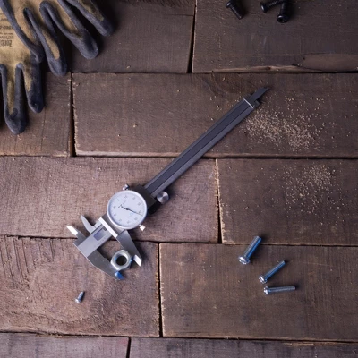 Measure accurately and easily with this Fleming Supply Dial Caliper. This versatile tool can be used to measure outside dimensions, inside dimensions, depth and step. Dial graduations of 0.001 inches across the 6-inch measurement range deliver accuracy, and the handy thumb-roll mechanism and position lock give enhanced accuracy and precision. The stainless steel is shockproof to help ensure accurate positioning while in use.