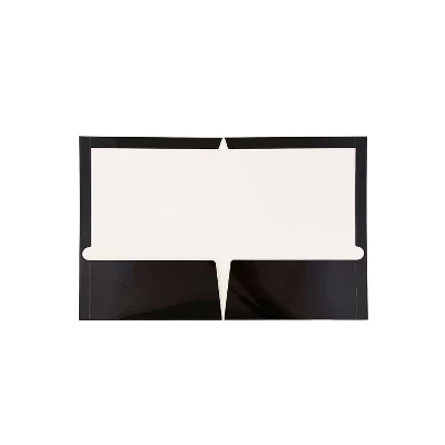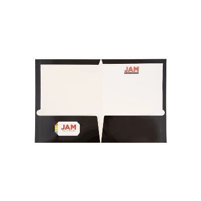 Protect reports, charts and other forms with this 100-pack of JAM Paper two pocket glossy-black presentation folders. Keep important documents secure and protected with these presentation folders. The glossy finish offers a sleek, sophisticated appearance that is sure to impress, while the black color gives a professional feel. These JAM Paper black presentation folders come in a 100-pack and feature two interior pockets, providing plenty of room to hold presentations, contracts and other papers. Presentation folders are made of black glossy cardstock for a professional appearance. Feature two pockets to store papers, brochures, and more. Holds standard letter-size paper. 100 folders per box for economy and long use. A business card holder adds an extra professional touch to each folder. Gloss finish. Sold as 100/Box.