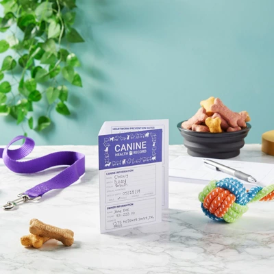 This set of 24 dog shot record booklet cards features space specifically dedicated to filling out immunization information and your furry friend’s health conditions and needs. The tri-fold puppy immunization record card books are ideal for use in vet’s offices or even by pet owners who want to keep track of their furry friend’s shots and health. Each canine health record card measures 4.9 x 10.3 inches folded and is perfectly sized to keep in folders, binders, or in your purse. Never lose track of a health detail again with these little pet passport-sized cards!