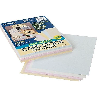 The heavyweight Pacon Array Card Stock is perfect for greeting cards, report covers, flyers, announcements and memory books. It is available in assortment of colors that include blue, gold, natural, pink, and tan. For report covers, flyers, postcards and art projects. Acid-free for archival quality. Compatible for copiers, inkjet printers, laser printers, typewriters. Includes 100 sheets per card stock. 65-lb for report covers, flyers, postcards and art projects. Use in printers, copiers or typewriters. 81/2″ x 11″ acid-free sheets. Contains 10-25% recycled content. Assorted parchment colors. Sold as 100/Pack.