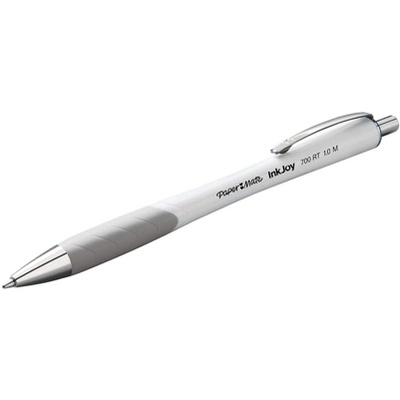 Add character to your signature with this 12-pack of Paper Mate InkJoy 700RT medium-point retractable white-barrel blue-ink ballpoint pens. Draw, write or simply doodle with these medium-point retractable ballpoint pens. The white barrel and silver accents give these pens a sleek, stylish appearance, while the vivid blue ink gets writing noticed without smudging or smearing. These Paper Mate InkJoy 700RT medium-point ballpoint retractable pens feature a textured grip to make extended writing sessions more comfortable while providing enhanced control. Retractable ballpoint pens for ease of use. Blue ink is easy to read. 1.0mm medium tip. White barrel. One dozen pens per pack. Comfort grip for superior control. Features a pocket clip for convenient carrying. Unique hourglass shape features a comfortable grip for a natural fit in your hand. Sold as 1 Dozen.