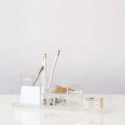 Add extra functionality and organization to your acrylic collection. Our acrylic bloc features a compact design to help hold and organize small office accessories, adhesive notes, trinkets and treasures as well as jewelry. Use these trend forward acrylic pieces on their own, or stack them with other pieces in the russell+hazel bloc collection to create a custom system that adds life to your work.