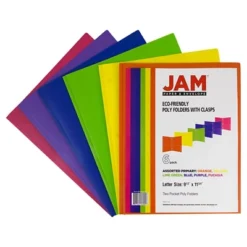 JAM 6pk POP 2 Pocket School Presentation Plastic Folders With Prong Fasteners Primary Colors