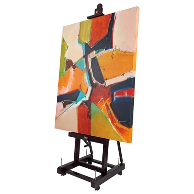 - FEATURES: Elegant mahogany finish, an easy-to-use crank system and 3 canvas holders, made out of furniture-grade lumber, removable wood pegs for edge-to-edge painting, turn knobs lock the canvas into place, four casters (two with locks), and easy to maneuver and fit into tight spaces