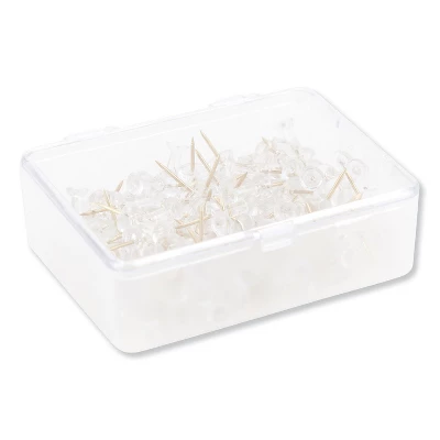 These clear head push pins crafted by U Brands provide excellent assistance in pinning your important papers and messages while keeping you organized. Durably constructed, these pins allow you to easily pin your supplies from the sturdy plastic head without harming your hands by its sharp, steel point. The sharp end of the pin can be easily inserted into tough surfaces such as cork boards, bulletin boards, notice boards and maps and can even be used to hang up personal decorations like posters. Ideal for work and home offices, classrooms, and dorm rooms, these push pins are essential for your office supply expectations. Stylish thumbtacks come in appealing, reusable packaging perfect for office organization. Standard push pins with plastic head and metal needle point. Essential for office, classroom and work space needs. Used to pin locations on maps, important papers and messages to cork boards, foam boards and more. Pins are reusable, providing longtime use. Packed in a reusable plastic case to keep your desktop or your desk drawer organized. Sold as 100/Pack.