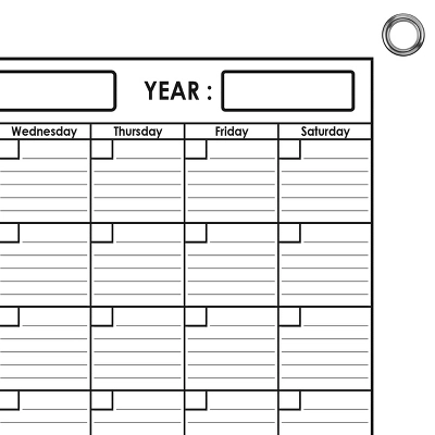 The undated format allows you to reuse each month or use several together for advanced, rotating plans. Large date blocks and notes areas are a great place to keep track of key events. The erasable format keeps your plans up to date, neat, and clean. Using the wet erase marker, you can gently wipe the surface clean and update your schedule as needed. Easy to hang and ready to use upon arrival, it’s easy to get planning and make the most of your time. Ships rolled in tube.