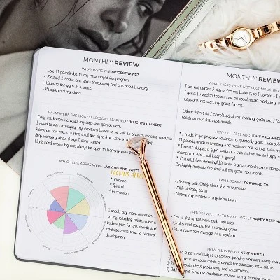 This 12-month weekly planner combines creativity and organization to help you envision your goals and stay motivated to keep going. Start anytime with the non-dated pages and illustrated user manual. Keep your months, weeks, and days in order with prompts to set your priorities, track your habits, create to-do lists, and plan your days to a T. Review your progress every month to see how far you’ve come. Create your vision board, understand your motivations, and shape goals that move you closer to your vision. The soft-touch vegan leather hardcover and premium keepsake box make for a deluxe gift, while elegant layouts and bonus stickers will make planning fun and exciting. The planner comes in a standard A5 size, so you can carry it with you and plan on the go.