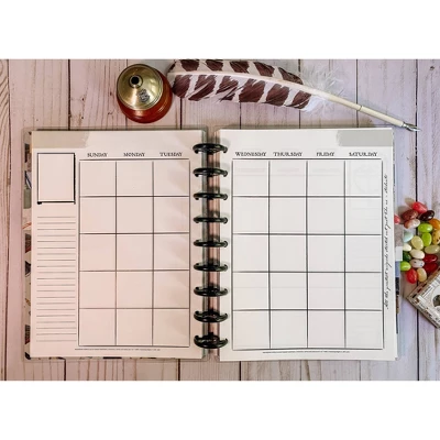 The Harry Potter Hogwarts™ Weekly Undated Disc Planner is a weekly vertical format planner that is disc bound with custom Lightning Bolt discs so the pages are movable and removable! There are 12 month layouts, 60 weekly layouts, 12 Wizarding School themed tab dividers plus goals pages and year end reflections! Five sticker sheets are also included featuring a full sheet with character birthdays and month stickers for the pages and tabs! There has never been a Harry Potter planner like this before!