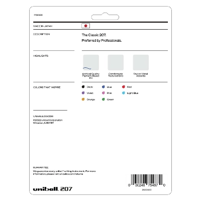 Give your writing an artistic flair by using this set of eight uni-ball Signo 207 0.7mm medium-point assorted retractable gel pens. Brighten up your office, home or classroom writing tasks with 207 Fashion Retractable Gel Pens from uniball featuring a 0.7mm medium point with a stainless steel tip that resists bending and breaking. Even-flowing, pigment-based gel ink delivers a smooth writing experience for intense, vibrant color, ensuring that every mark is brilliantly communicated. These gel click pens help you organize your thoughts or meeting notes by assigning different colors to them and are useful for adding beautiful details to creative projects such as journals, photo books or scrapbooks. Innovative uni Super Ink technology creates an indelible bond with the paper, producing fraud, fade and water-resistant documents. The textured grip offers greater comfort and control as you continue writing, while a translucent ink window indicates the level of gel ink remaining, so you don’t run out unexpectedly. Add colorful expression to your personal and professional projects with 207 Fashion Gel Pens. Clip click gel pens are useful for color-coding lists or embellishing creative projects. Water and fade-resistant gel ink helps you compose long-lasting, high-quality documents you can archive. uni Super Ink entraps the ink in the paper, creating a strong bond that resists document fraud. A textured rubber grip ensures ease of writing while helping you maintain good control; convenient clip ensures that your favorite gel pen is always at hand. Brighten up your personal expression with rich gel ink-color payoff. Comfort grip for superior control. Features a pocket clip for convenient carrying. Comfortable, round barrel design. Water-proof ink formula. Gel pens feature colorful, translucent barrels with smooth-flowing, vibrant ink. Sold as 8/Set.