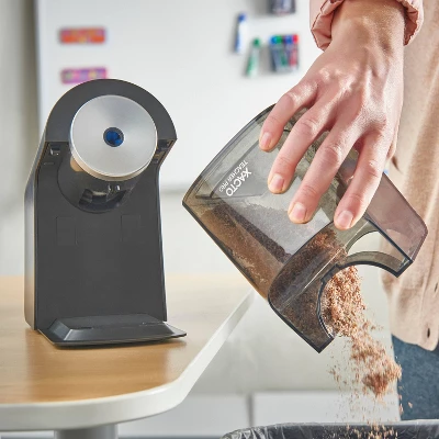 The break resistant X-ACTO® Teacher Pro® Pencil Sharpener lets students spend less time sharpening and more time focusing on what matters. This electric pencil sharpener gets woodcase pencils to a precise tip, so there’s less lead breakage and less distractions in the classroom. The SmartStop® feature prevents oversharpening by automatically shutting off the electric motor when a pencil reaches ideal sharpness, while a bold LED light lets students know when sharpening is complete. The auto-adjust dial works with all pencil sizes and makes sharpening less distracting while the slip-resistant bottom keeps the pencil sharpener steady. Finally, the SafeStart® electric motor stops when the extra-large, easy-to-empty shavings bin is removed. It’s also compatible with colored pencils. Stay sharp with X-ACTO®, the #1 electric pencil sharpener brand!